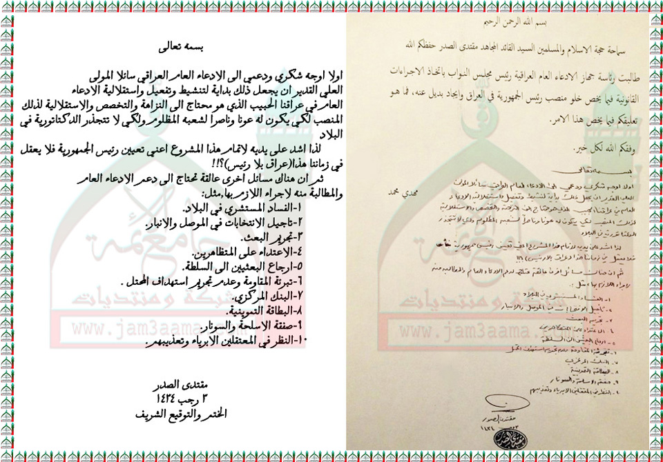 بيانات واستفتاءات السيد القائد مقتدى الصدر نصره الله
