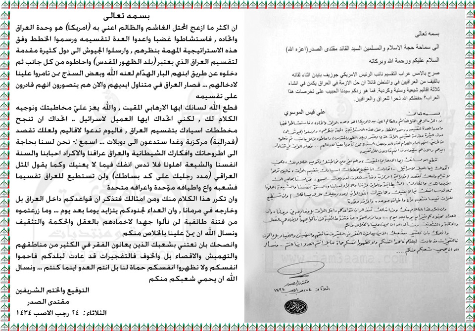 مشروع بايدن التقسيمي للعراق استفتاء السيد القائد مقتدى الصدر اعزه الله 4 / 6 / 2013