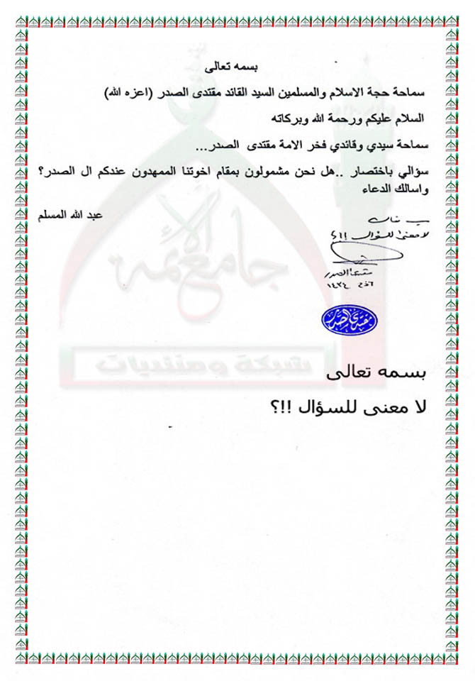 مشروع الممهدون استفتاء السيد القائد مقتدى الصدر اعزه الله 12 - 10 - 2013