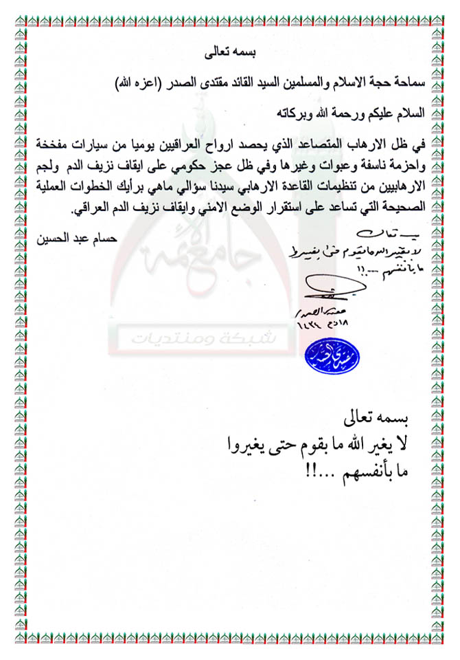 بيانات واستفتاءات السيد القائد مقتدى الصدر نصره الله