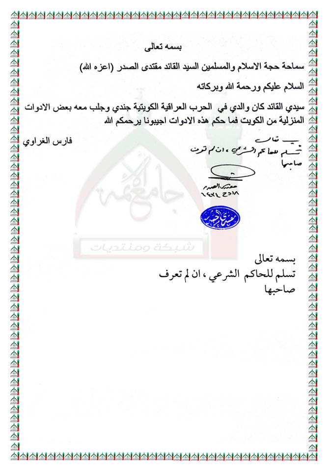 مسالة في مجهول المالك استفتاء السيد القائد مقتدى الصدر اعزه الله 24 - 10 - 2013