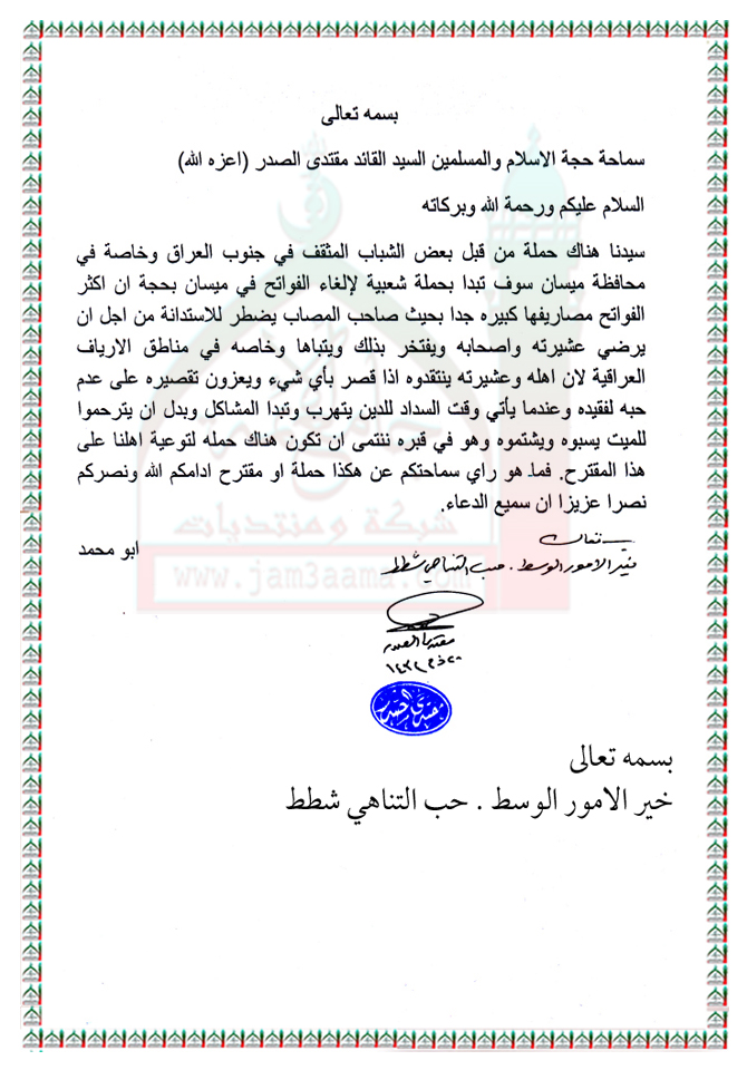 الغاء مجالس العزاء في الجنوب استفتاء السيد القائد مقتدى الصدر اعزه الله 27 - 10 - 2013