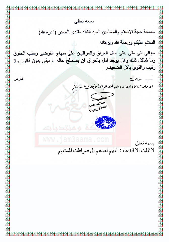 بيانات واستفتاءات السيد القائد مقتدى الصدر نصره الله