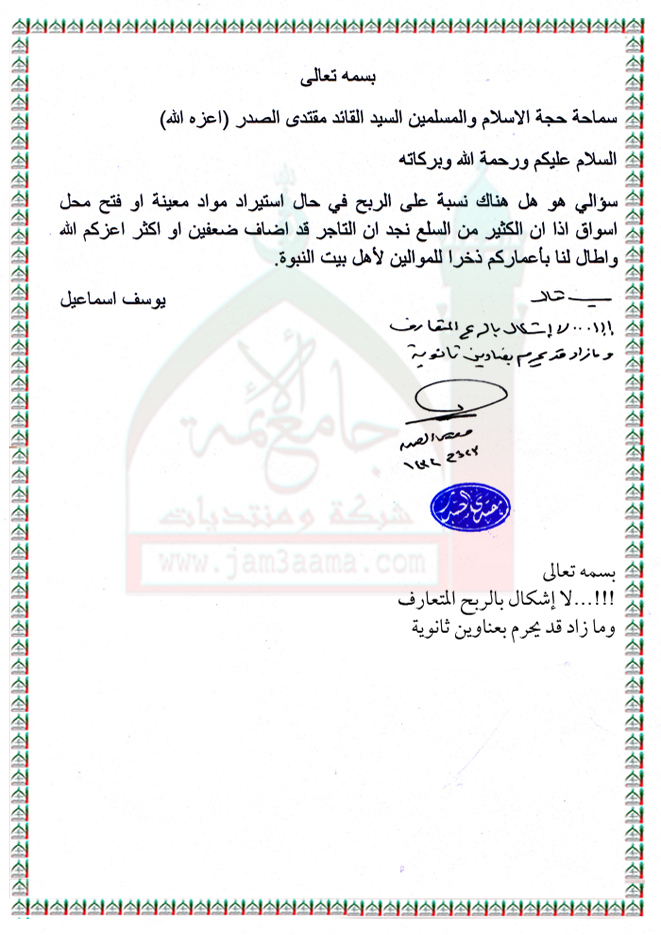 الربح في التجارة استفتاء السيد القائد مقتدى الصدر اعزه الله 30 - 10 - 2013
