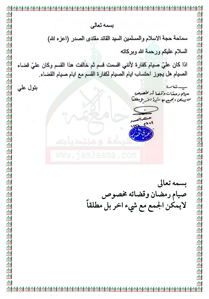 صيام رمضان وقضائه مخصوص استفتاء السيد القائد مقتدى الصدر اعزه الله 30 - 10 - 2013
