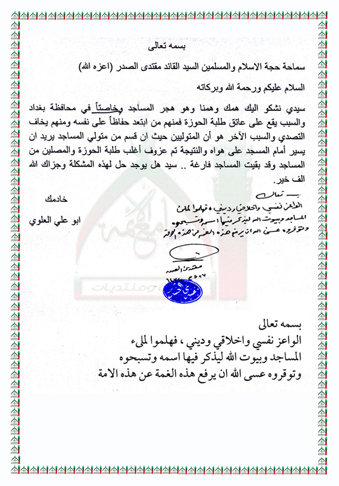 عزوف طلبة الحوزة عن الصلاة في المساجد استفتاء السيد القائد مقتدى الصدر اعزه الله 2 - 11 - 2013