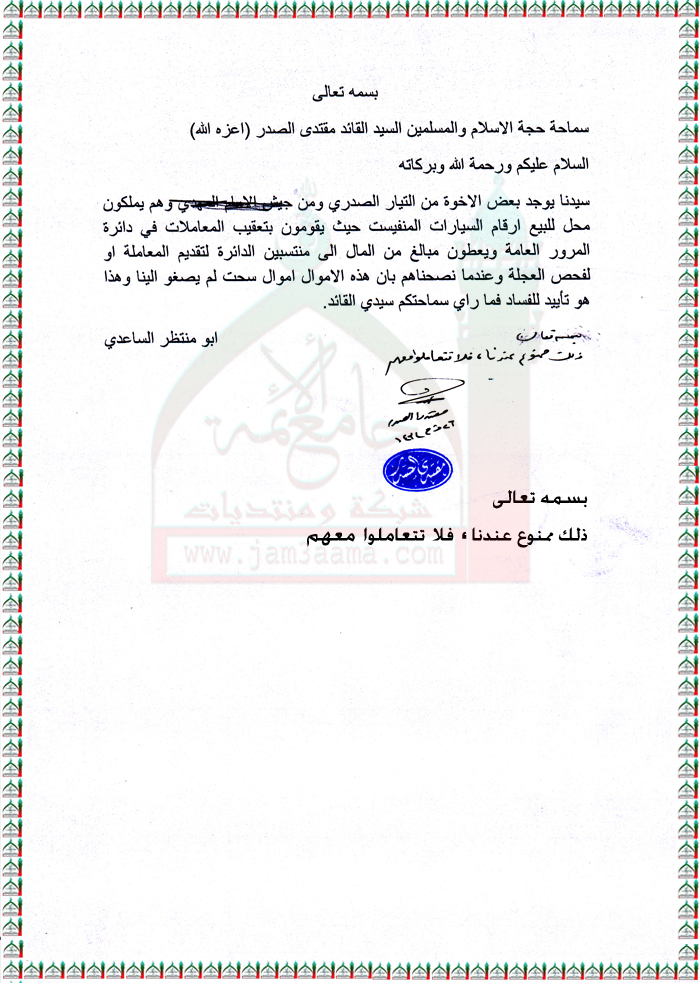 تعقيب المعاملات استفتاء السيد القائد مقتدى الصدر اعزه الله 2- 11 - 2013