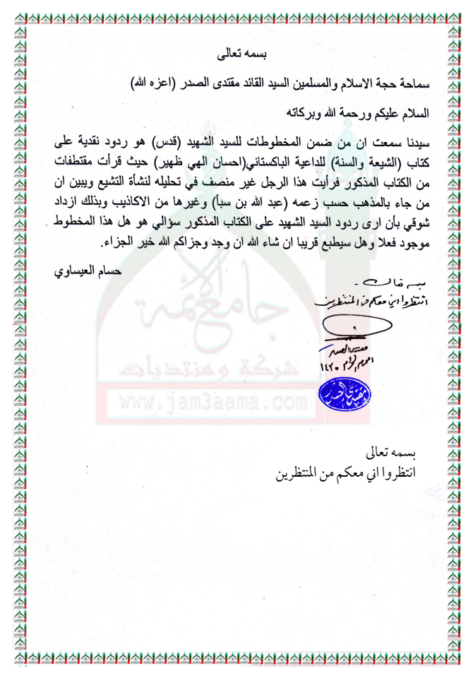 رد السيد الشهيد قدس على كتاب الشيعة والسنة استفتاء السيد القائد مقتدى الصدر 6 - 11 - 2013