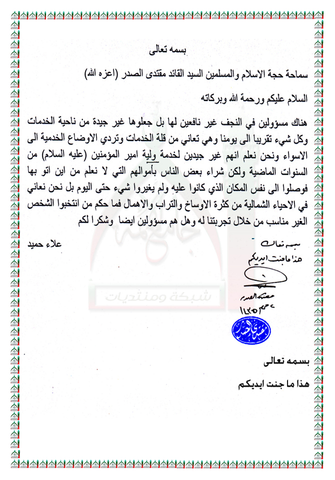 الاوضاع الخدمية المتردية في النجف استفتاء السيد القائد مقتدى الصدر اعزه الله 9 - 11 - 2013