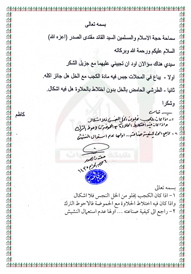 تناول وصناعة الكجب استفتاء السيد القائد مقتدى الصدر اعزه الله 11 - 11 - 2013