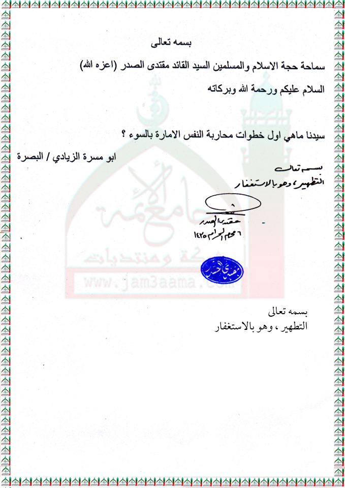 اول خطوات محاربة النفس الاماره بالسوء استفتاء السيد القائد مقتدى الصدر اعزه الله 11 / 11 / 2013