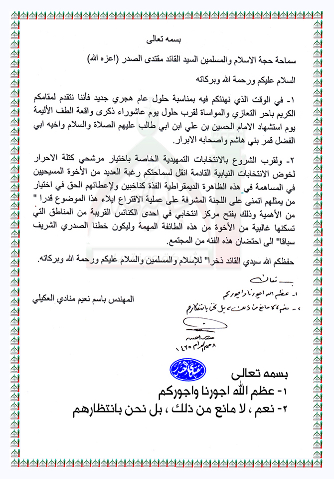 الانتخابات التمهيدية استفتاء السيد القائد مقتدى الصدر اعزه الله 16 - 11 - 2013