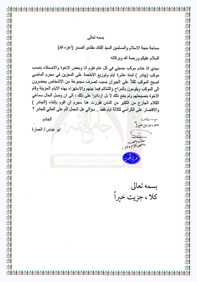 الغاء موكب يحفل بالمزاح والشتائم استفتاء السيد القائد مقتدى الصدر اعزه الله 16 - 11 - 2013