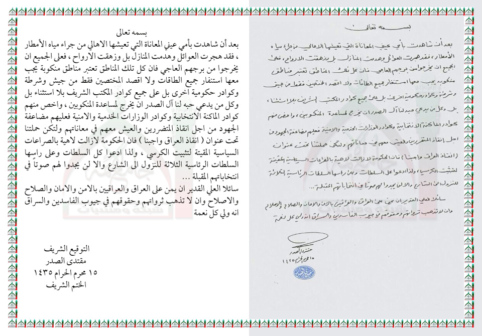 بيانات واستفتاءات السيد القائد مقتدى الصدر نصره الله