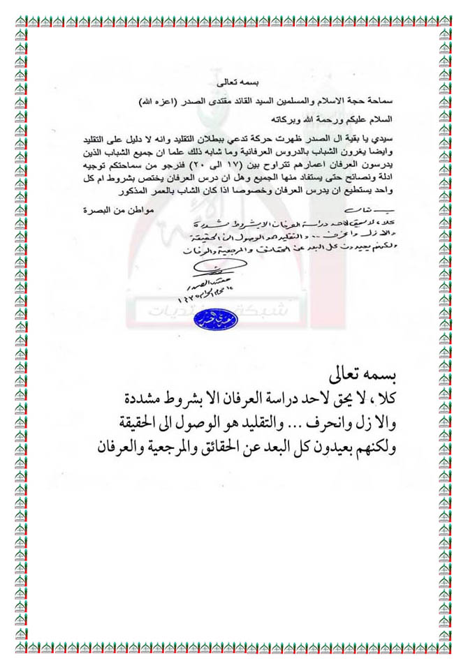 ظهور حركة تدّعي بطلان التقليد استفتاء السيد القائد مقتدى الصدر اعزه الله 21 - 11 - 2013
