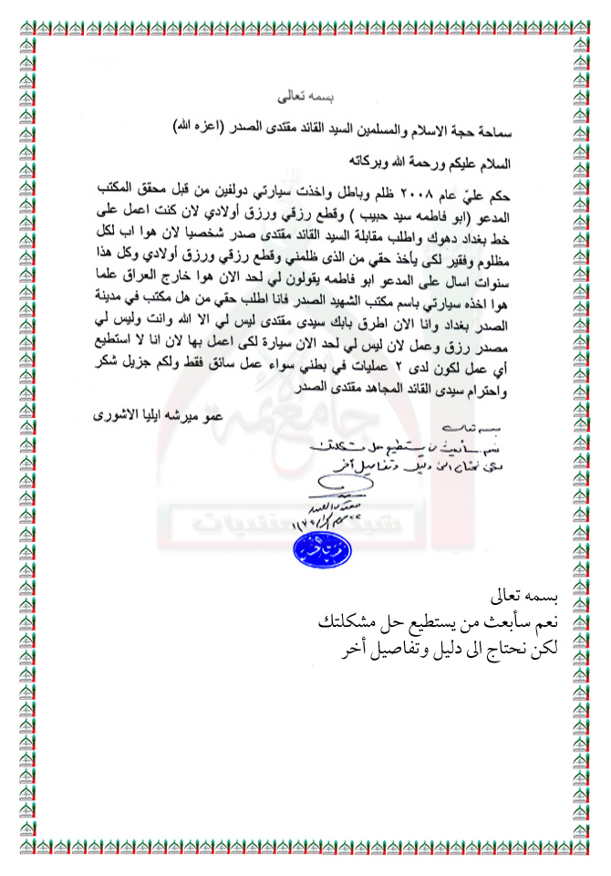 رفع مظلومية احد الاشوريين استفتاء السيد القائد مقتدى الصدر اعزه الله 27 - 11 - 2013
