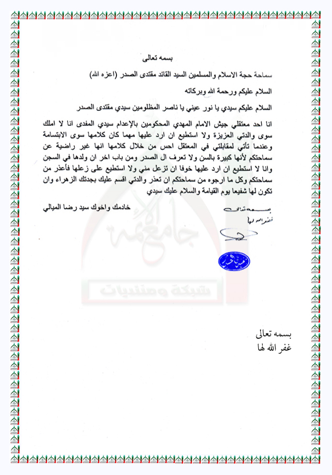 اعتذار من احد المعتقلين استفتاء السيد القائد مقتدى الصدر اعزه الله 27 - 11 - 2013
