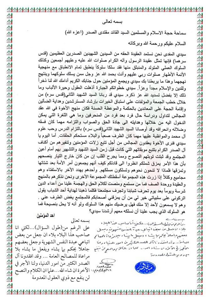 البعض من يتتبع عثرات المؤمنين وينفّرهم من آل الصدر الكرام استفتاء السيد القائد مقتدى الصدر اعزه الله 2 - 12 - 2013