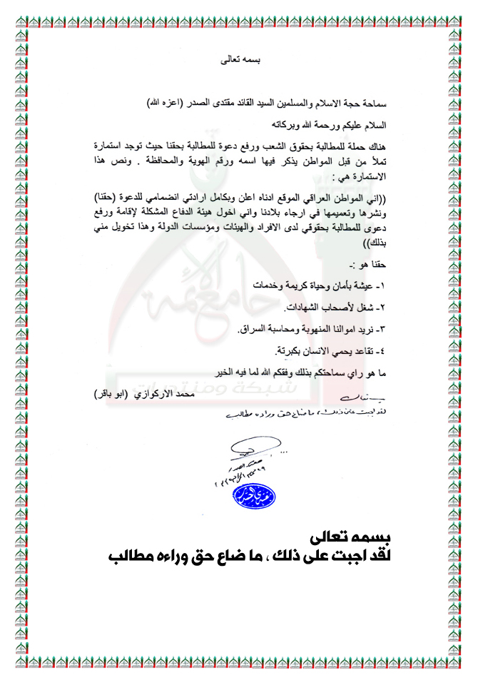 الاشتراك في حملة " حقنا " استفتاء السيد القائد مقتدى الصدر اعزه الله 4 - 12 - 2013