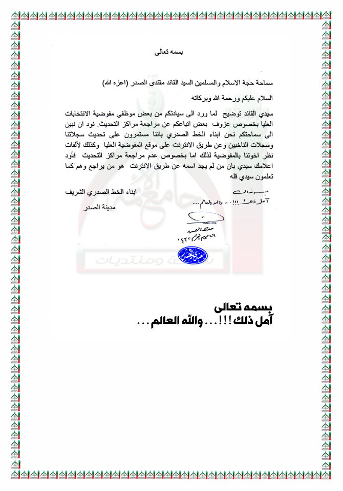 تحديث سجلات الناخبين استفتاء السيد القائد مقتدى الصدر اعزه الله 4 - 12 - 2013