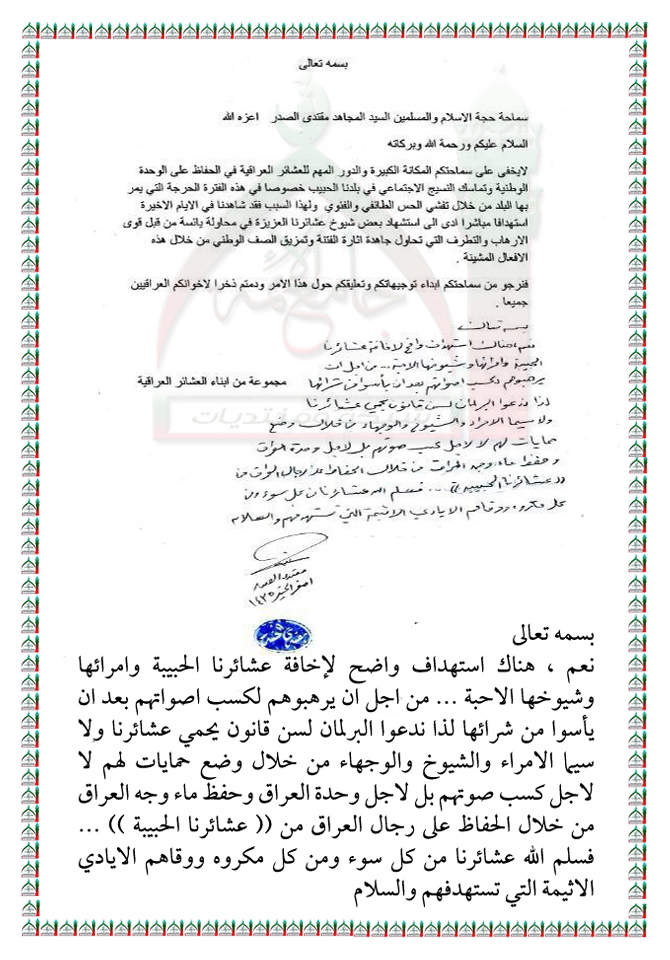 استهداف شيوخ العشائر العراقية استفتاء السيد القائد مقتدى الصدر اعزه الله 6 - 12 - 2013