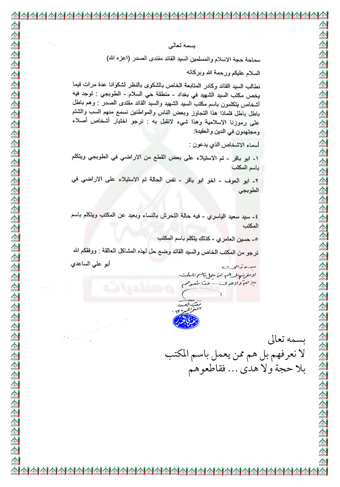 بيانات واستفتاءات السيد القائد مقتدى الصدر نصره الله