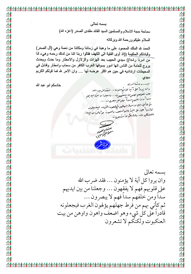 بيانات واستفتاءات السيد القائد مقتدى الصدر نصره الله