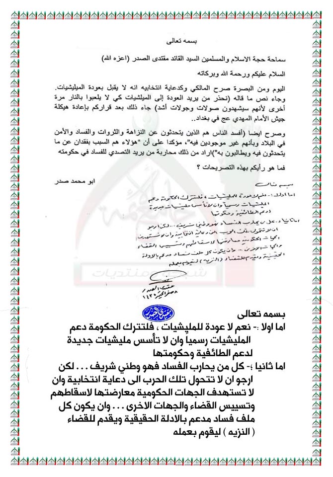 بيانات واستفتاءات السيد القائد مقتدى الصدر نصره الله