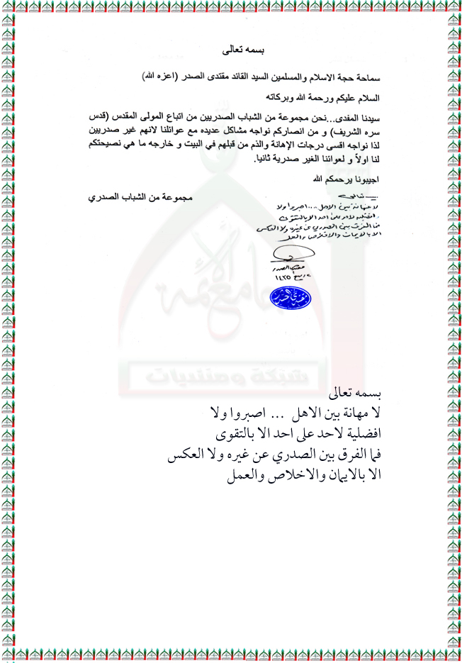 بيانات واستفتاءات السيد القائد مقتدى الصدر نصره الله