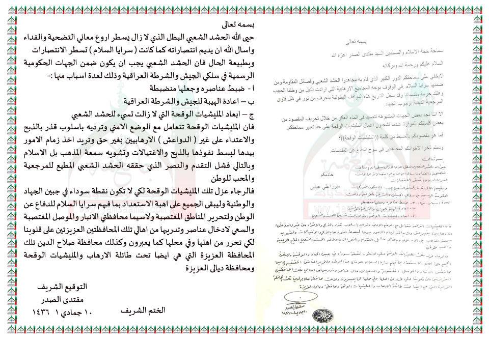 المقصود بالمليشيات الوقحة استفتاء السيد القائد مقتدى الصدر اعزه الله 3 - 3 - 2015