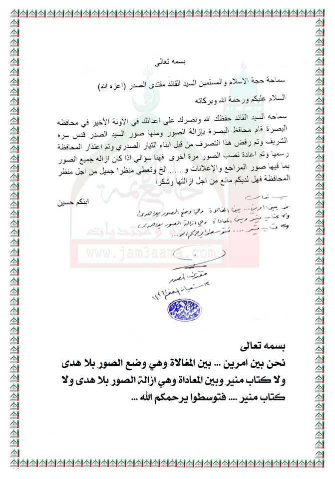 ما شهدته محافظة البصرة من رفع لصور السيد الشهيد محمد محمد صادق الصدر (قدس سره) استفتاء السيد القائد مقتدى الصدر اعزه الله 31 - 5 - 2015