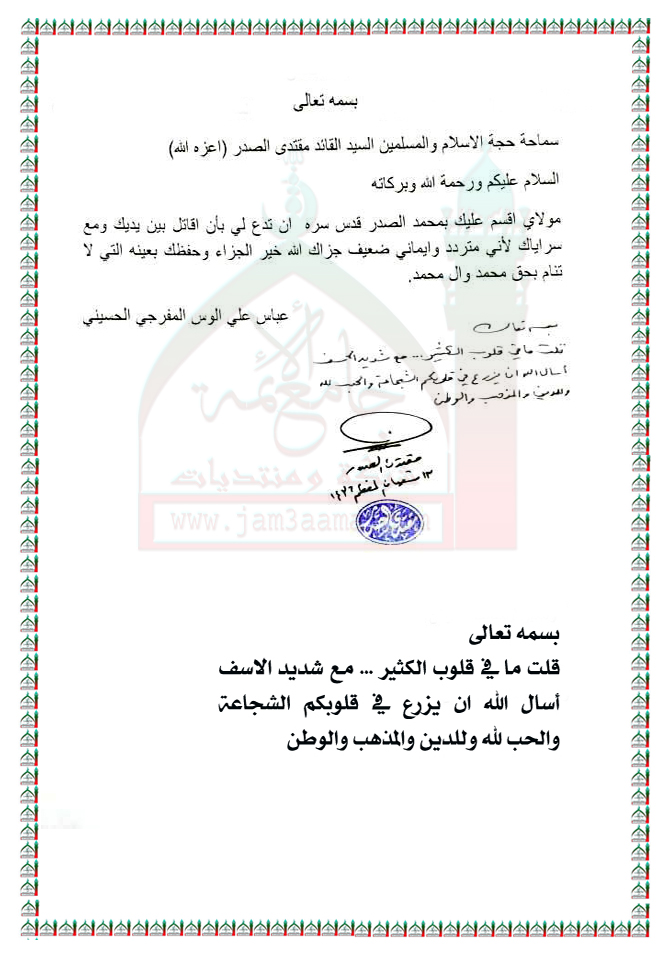شخص ايمانه ضعيف ومتردد في القتال يطلب الدعاء من سماحته الدعاء للاشتراك مع سرايا السلام استفتاء السيد القائد مقتدى الصدر اعزه الله 1 - 6 - 2015