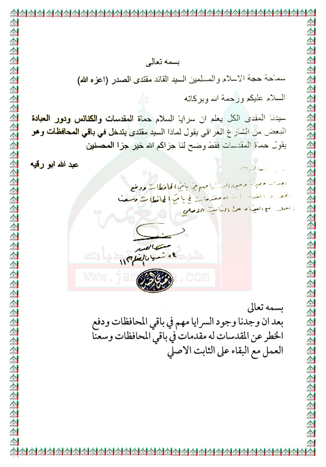 بيانات واستفتاءات السيد القائد مقتدى الصدر نصره الله