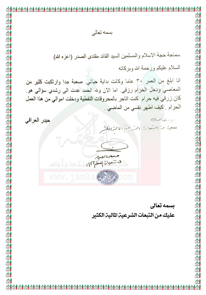 شخص يتاجر بالمحروقات النفطية استفتاء سماحة السيد القائد مقتدى الصدر ( اعزه الله ) 12 - 6 - 2015