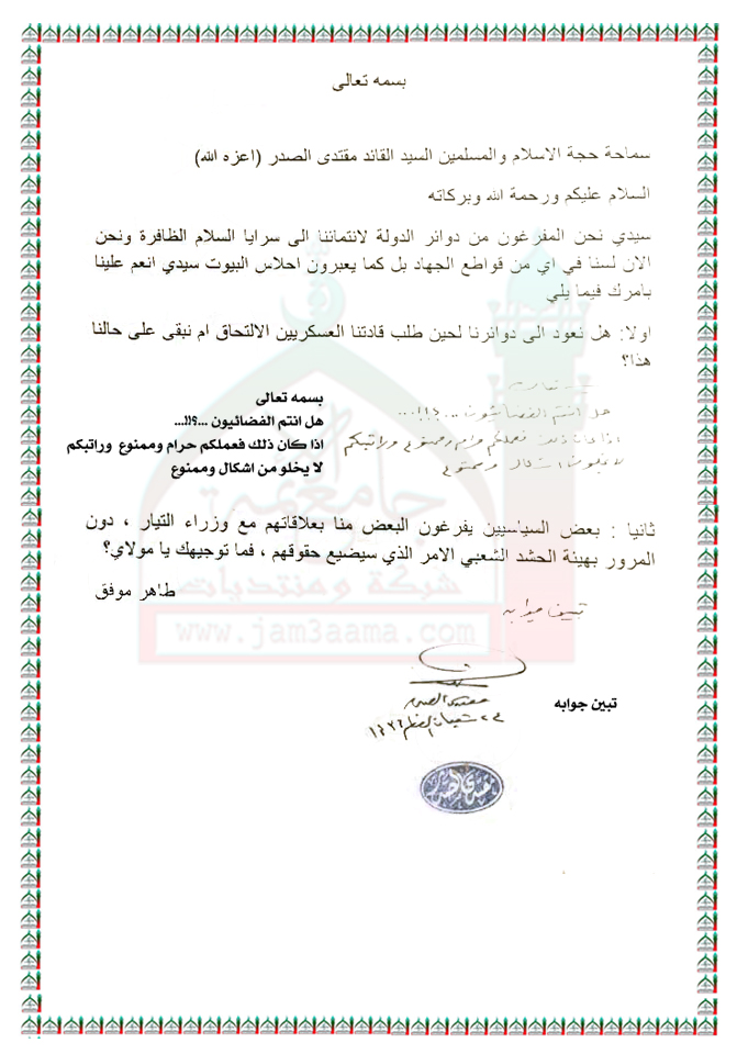 بيانات واستفتاءات السيد القائد مقتدى الصدر نصره الله