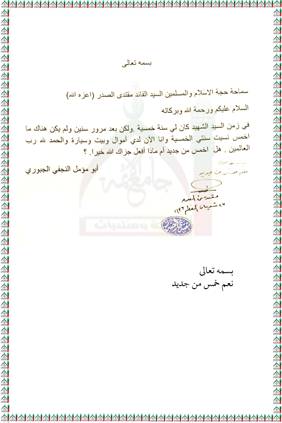 نسيان رأس السنة الخمسية استفتاء السيد القائد مقتدى الصدر اعزه الله 15 - 6 - 2015