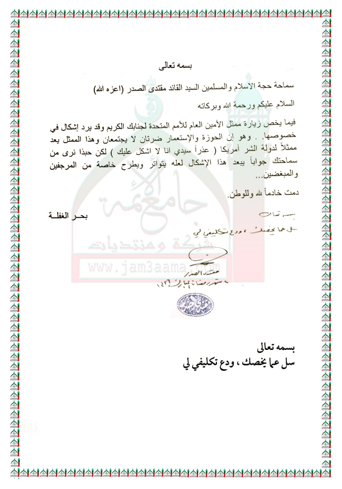 استقبال سماحته للامين العام للامم المتحدة استفتاء السيد القائد مقتدى الصدر اعزه الله 19 - 6 - 2015