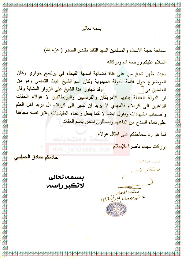 التجاوز على الشعائر الدينيه من قبل احد الاشخاص الذي يرتدي زياً دينياً استفتاء السيد القائد مقتدى الصدر (اعزه الله) 21 - 6 - 2015