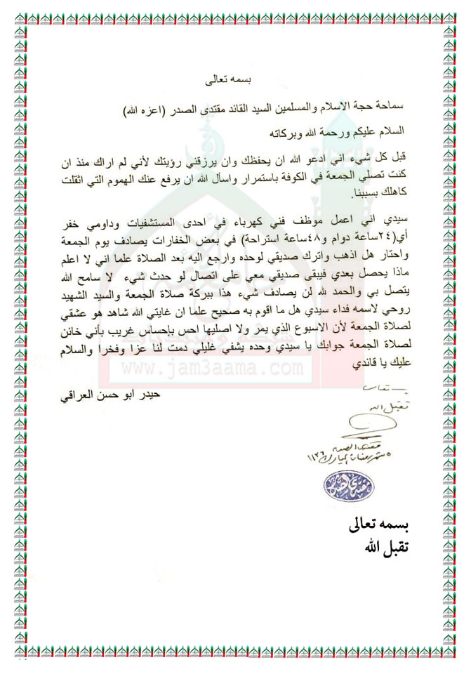 صلاة الجمعة المباركة استفتاء السيد القائد مقتدى الصدر اعزه الله 22 - 6 - 2015