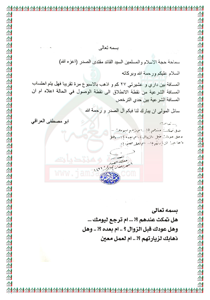 المسافة الشرعية استفتاء السيد القائد مقتدى الصدر اعزه الله 23 - 6 - 2015