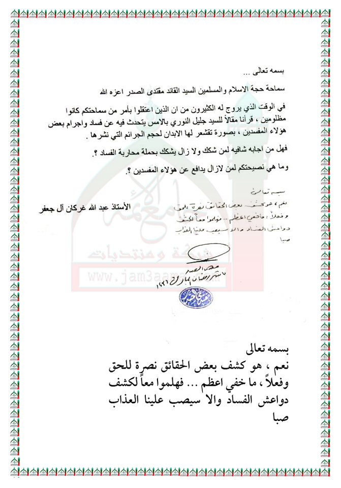 ما نشر من مقالة للسيد جليل النوري بخصوص دواعش الفساد استفتاء السيد القائد مقتدى الصدر اعزه الله 24 - 6 - 2015