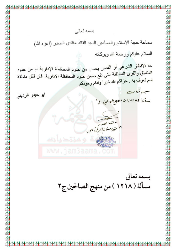 كيفية حساب حد الترخص استفتاء السيد القائد مقتدى الصدر اعزه الله 3 - 7 - 2015