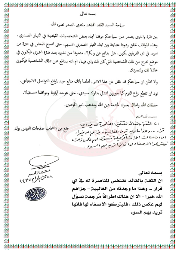 الردود المتباينة من قبل بعض اتباع التيار الصدري من مواقف سماحته مع بعض الشخصيات في مواقع التواصل الاجتماعي استفتاء السيد القائد مقتدى الصدر اعزه الله 11 - 11 - 2015