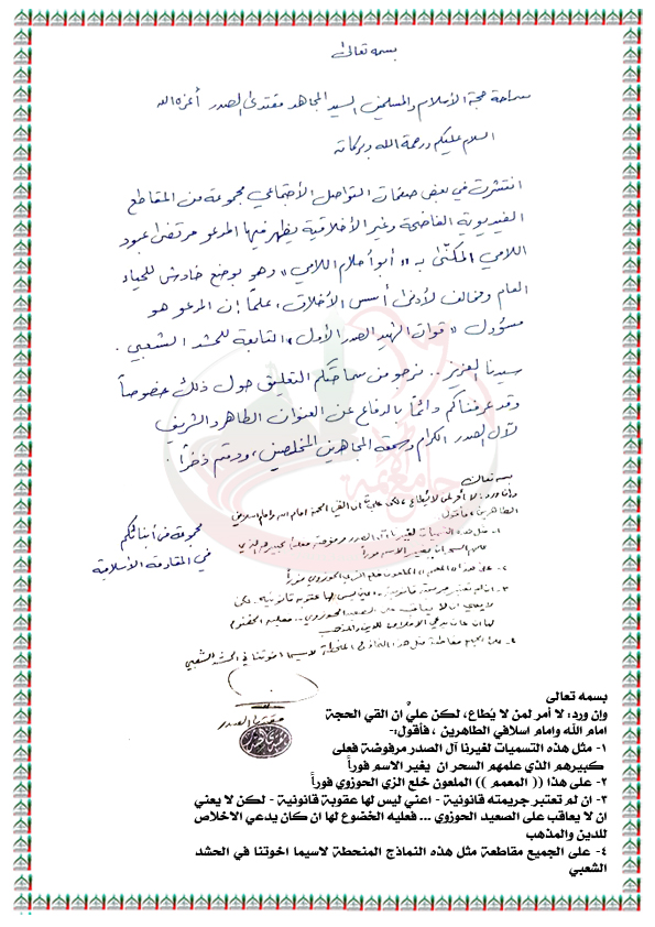 بيانات واستفتاءات السيد القائد مقتدى الصدر نصره الله