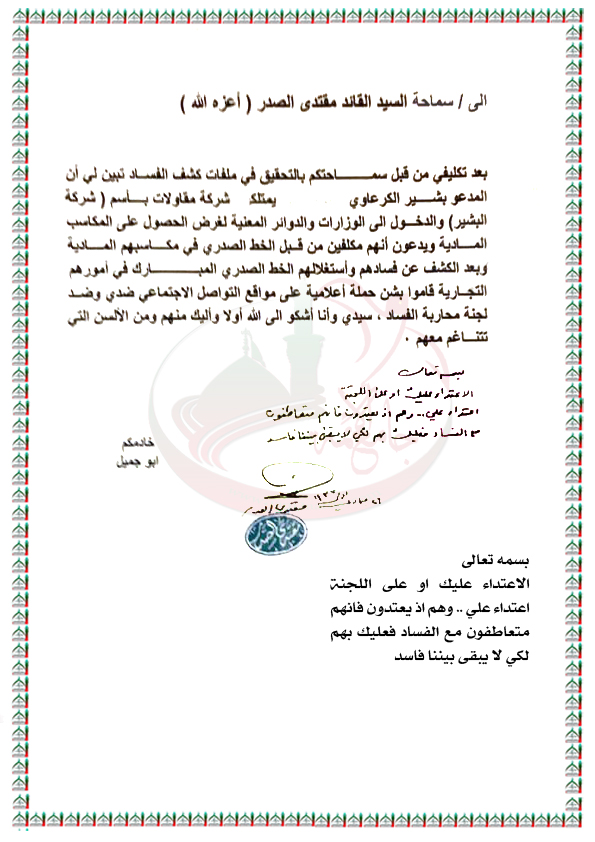 قيام البعض بحملة اعلامية في مواقع التواصل ضد لجنة محاربة الفساد استفتاء السيد القائد مقتدى الصدر اعزه الله 6 - 3 - 2016