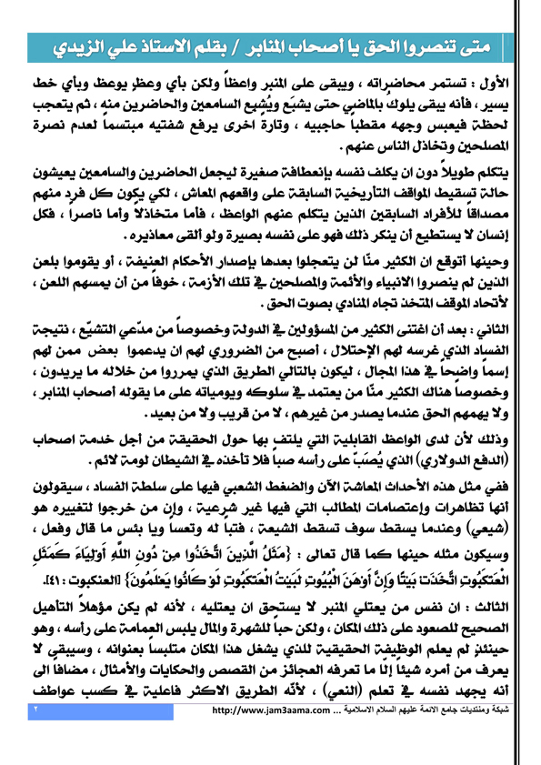 رد: متى تنصروا الحق يا أصحاب المنابر / بقلم الاستاذ علي الزيدي
