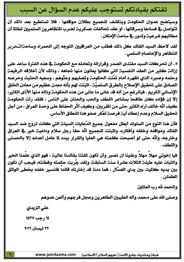 رد: ثقتكم بقيادتكم تستوجب عليكم عدم السؤال عن السبب / بقلم الاستاذ علي الزيدي