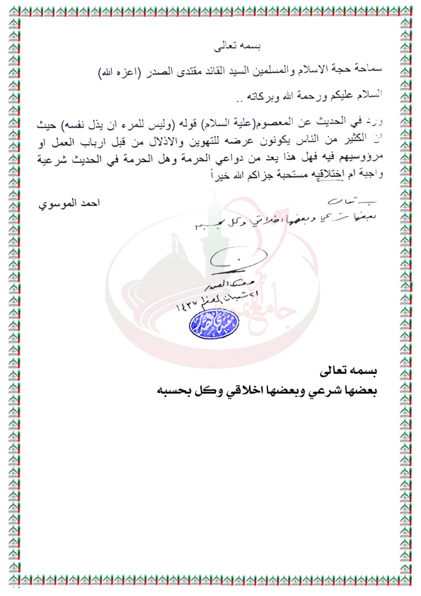الإذلال والتوهين الذي يتعرض له الكثير من الناس من قبل ارباب العمل استفتاء السيد القائد مقتدى الصدر اعزه الله 30 / 5 / 2016