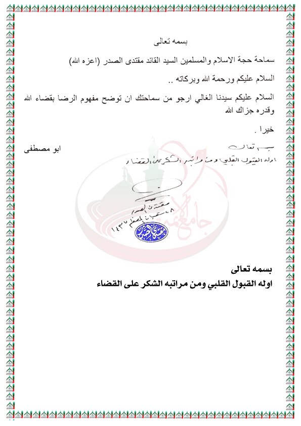 مفهوم الرضا بقضاء الله وقدره استفتاء السيد القائد مقتدى الصدر اعزه الله 6 / 6 / 2016
