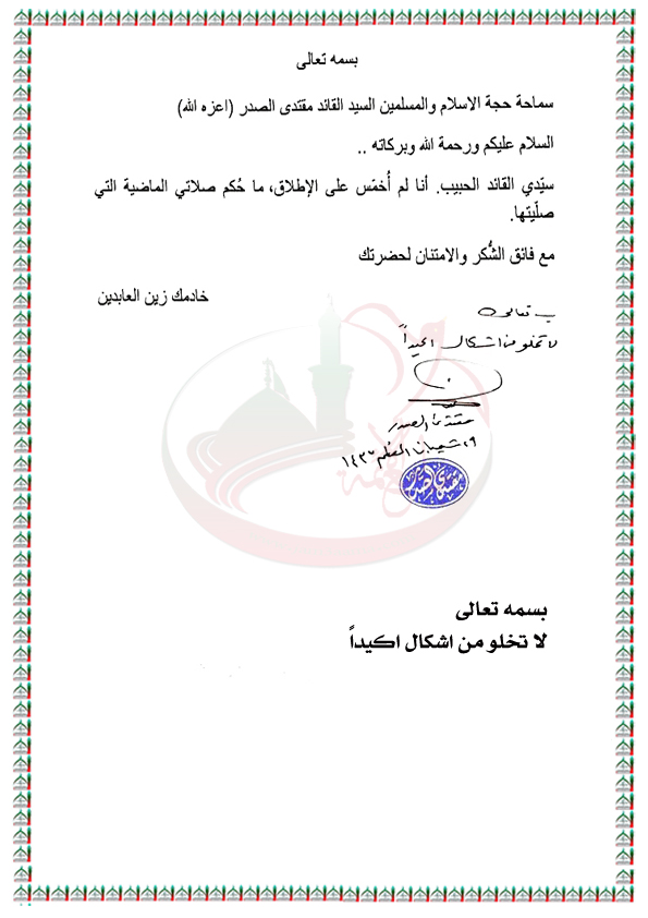 حكم الصلاة الماضية لغير المخمس اطلاقاً استفتاء السيد القائد مقتدى الصدر اعزه الله 7 / 6 / 2016